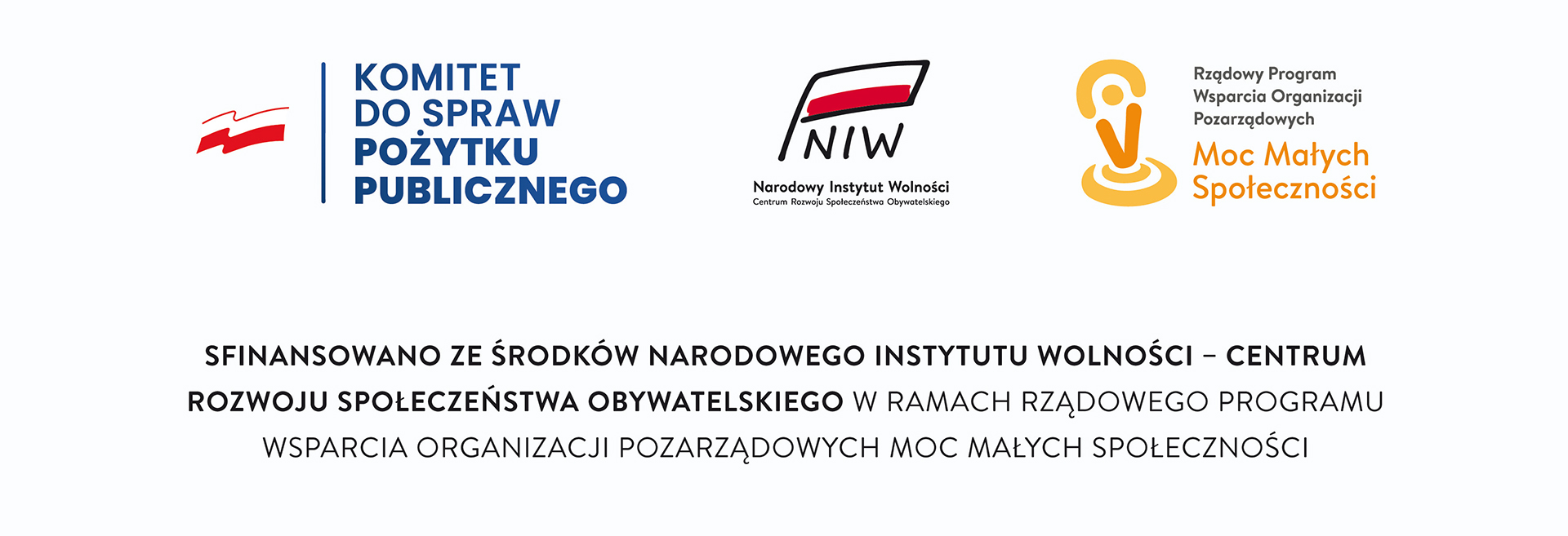 Projekt współfinansowany przez Narodowy Instytut Wolności Centrum Rozwoju Społeczeństwa Obywatelskiego ze środków Rządowego Programu wsparcia organizacji pozarządowych – Moc Małych Społeczności – Priorytet 3.